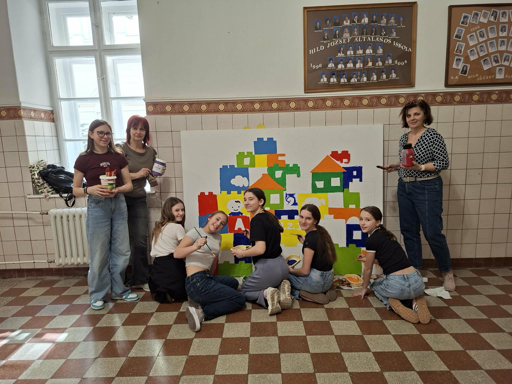A 2 × 1,5 méteres, színes festmény a gyerekek kreativitását, lelkesedését és együttműködését dicséri. Az ünnepélyes átadón büszkén láthattuk, milyen csodát hoztak létre közösen - mostantól ez a vidám alkotás fogadja a kis betegeket.